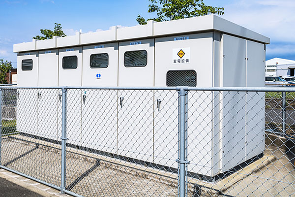 高電圧の電気を安全に使える電圧へと変換する受変電設備。見えないところで電気を守るこの設備を、最適な形で設計・構築するのが、二階堂の技術です。